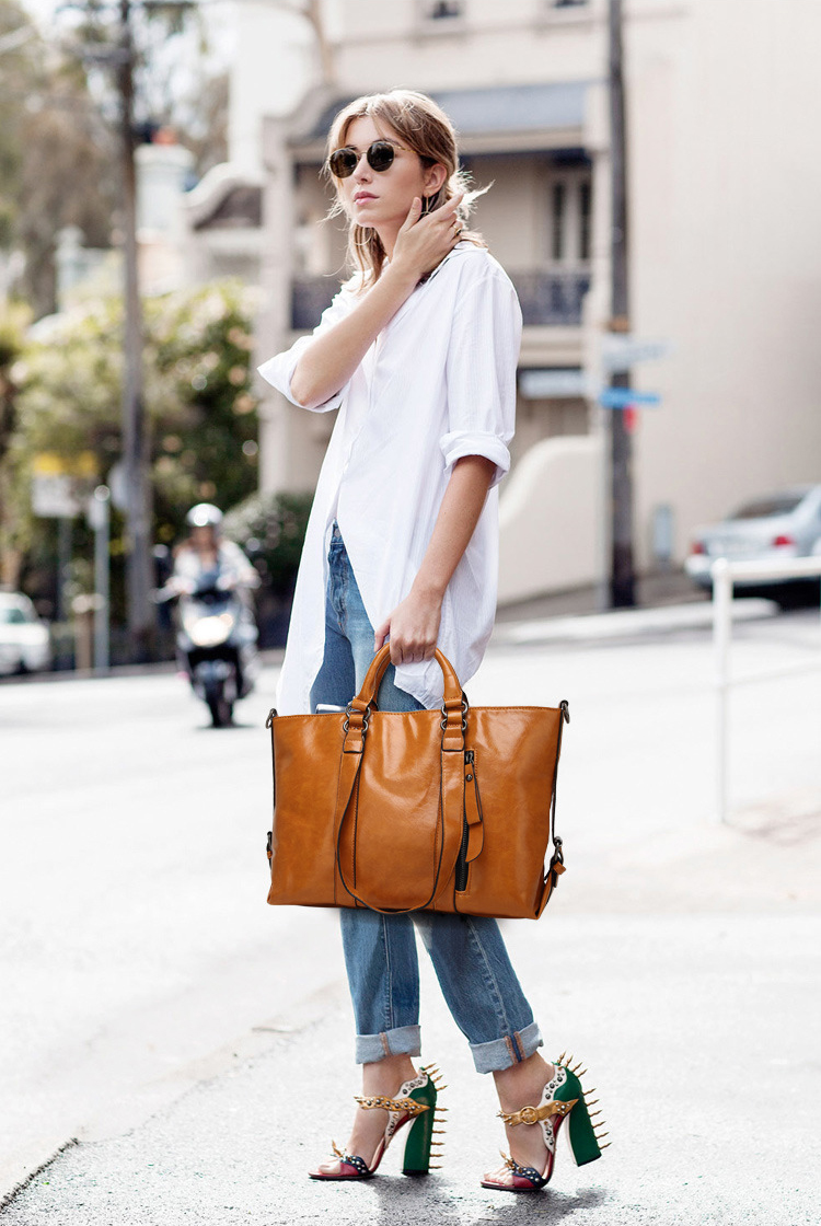 Маслена восъчна телешка кожаелегантна дамска чанта през рамо