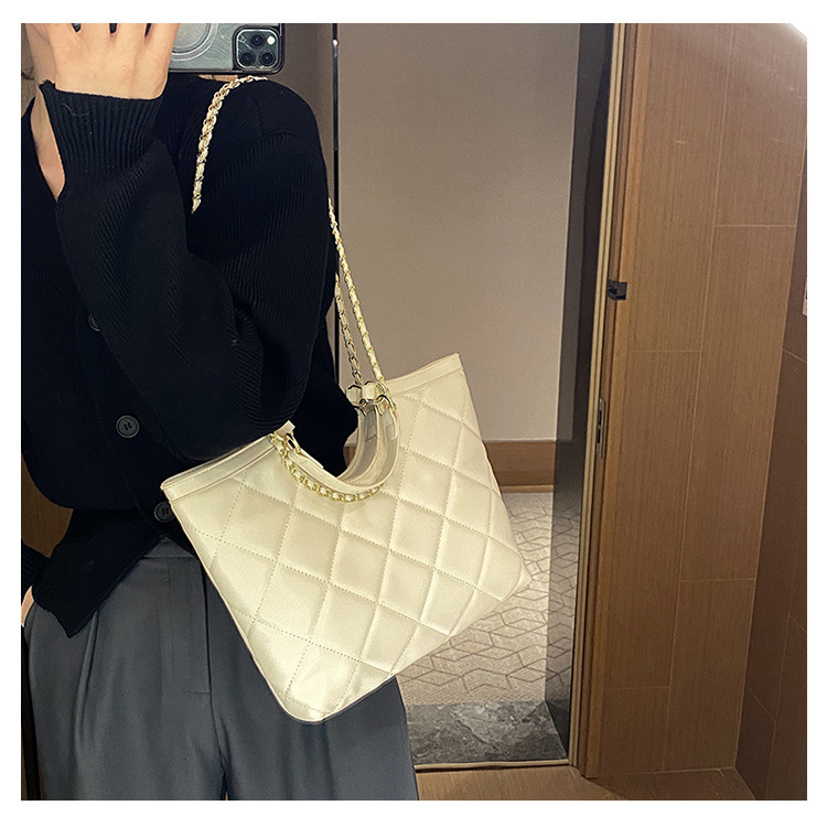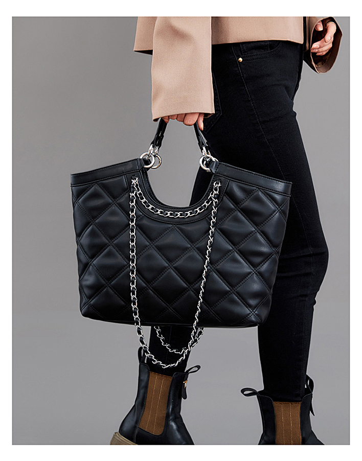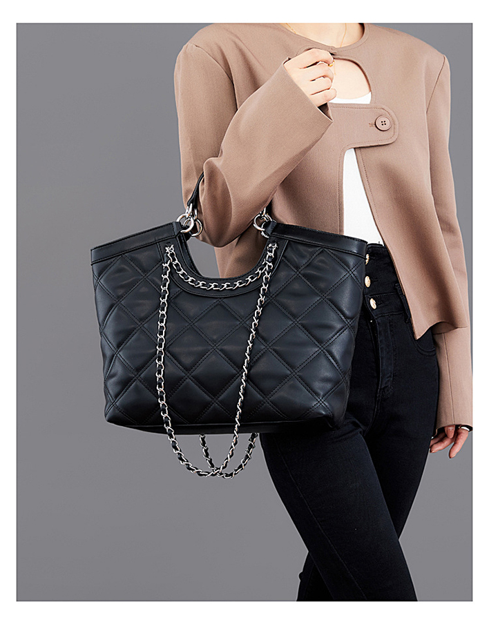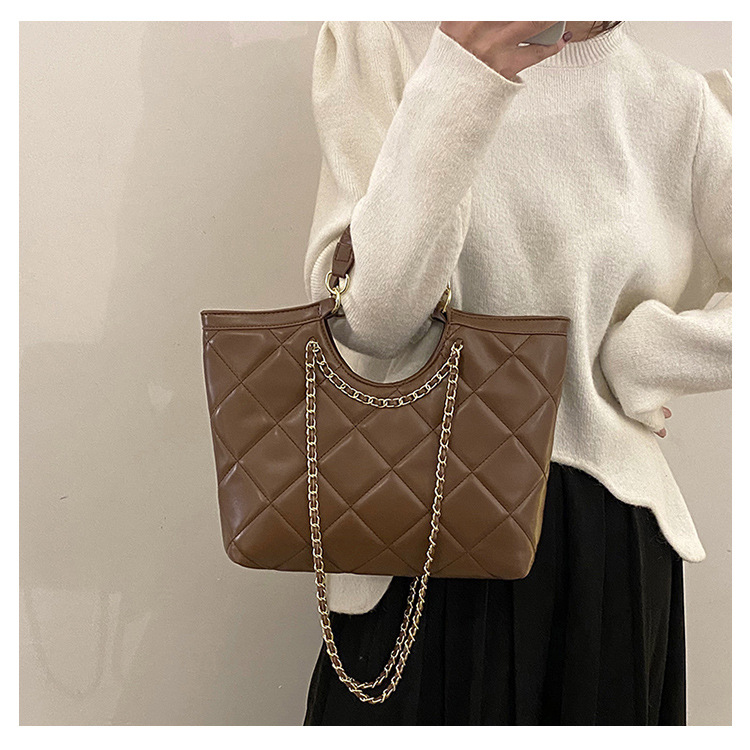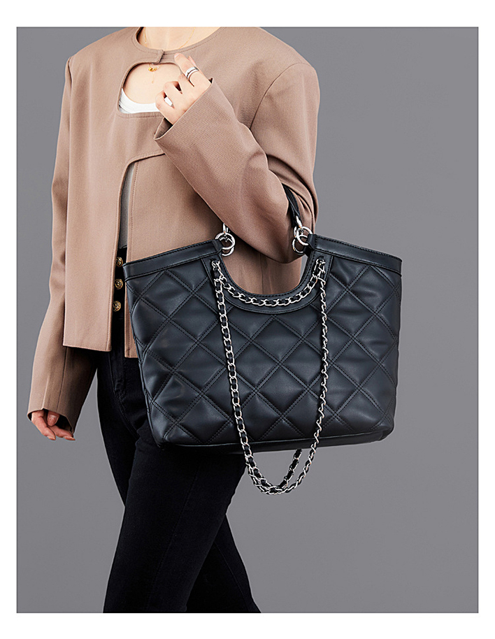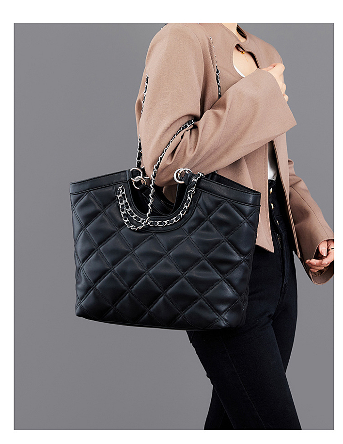 Нов стил чанта с ромбова верига с голям капацитет от телешка кожа
